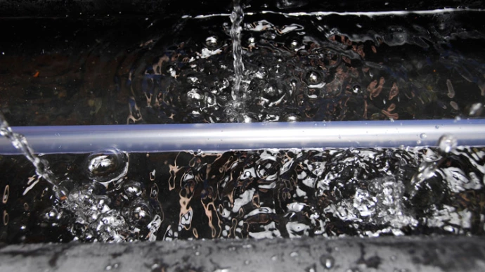 The extruded tube is rapidly cooled in a bath of chilled water.